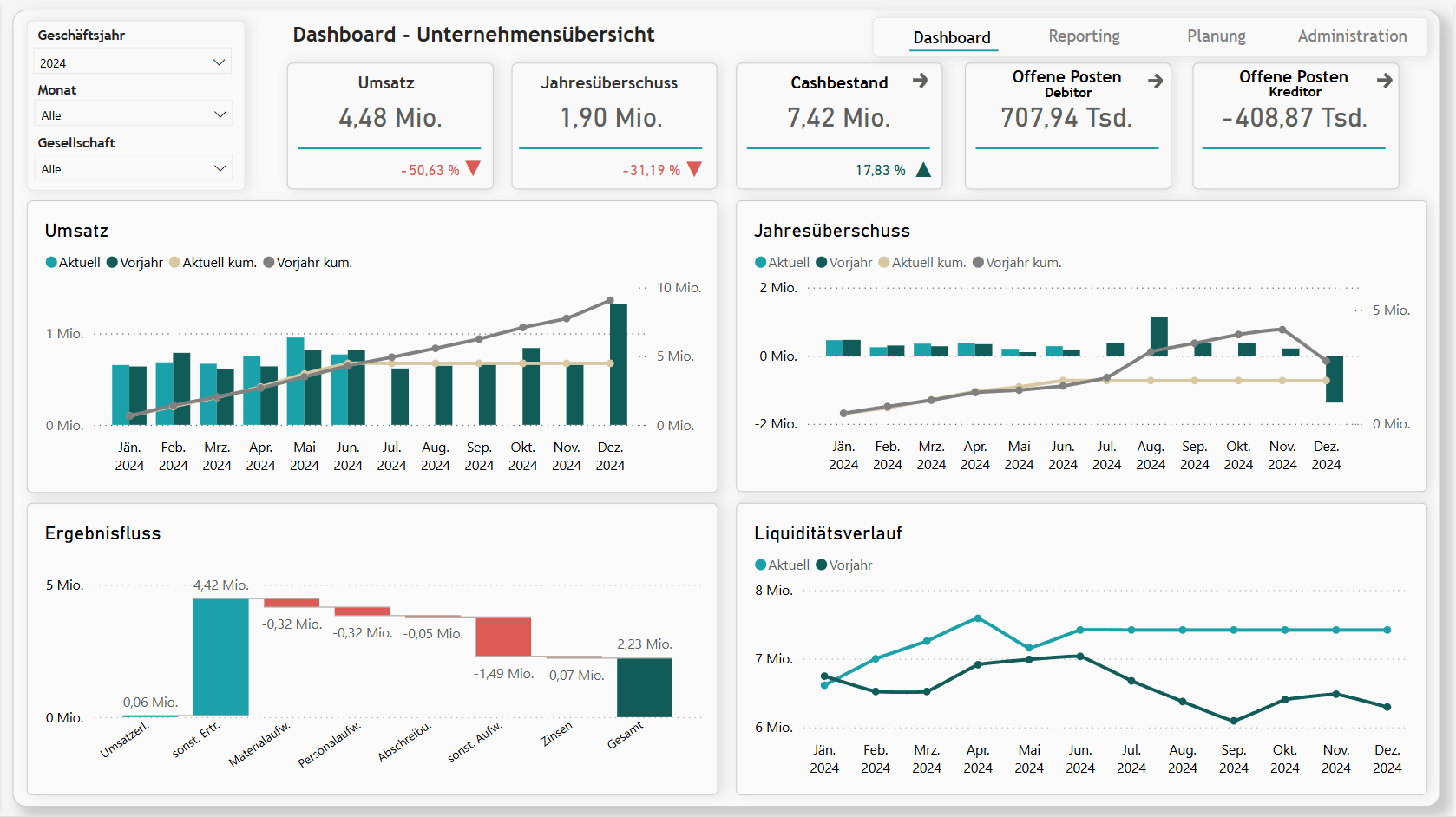 Wir integrieren Kader-, Finanz-, Sponsoring- und Marketingsdaten in einer gemeinsamen Plattform – inklusive Szenarien wie Auf- oder Abstieg, Verletzungen oder Sponsoring-Risiken.